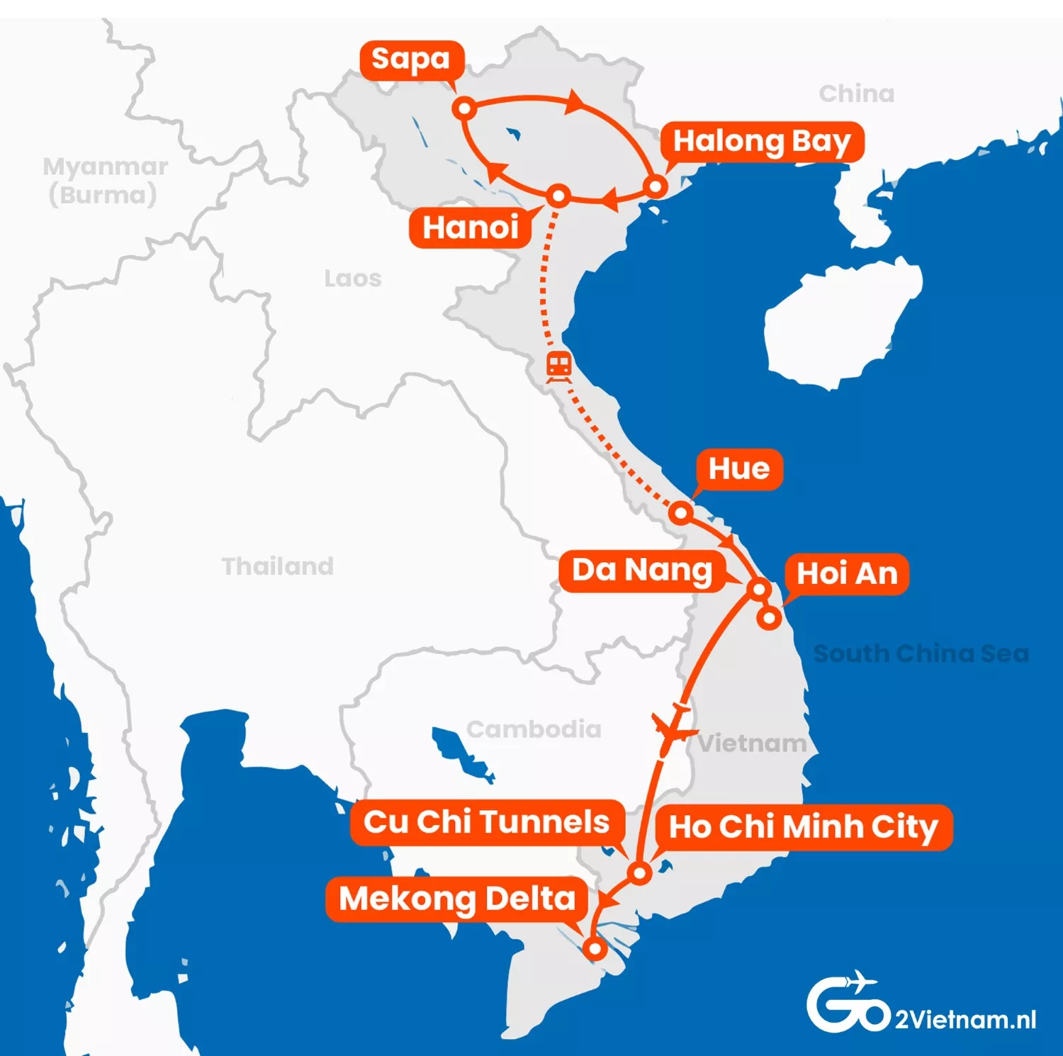 Waar je in Vietnam ook naartoe gaat, wij beloven je dat je prachtige dingen gaat zien en een geweldige tijd gaat hebben. Een vakantie in Vietnam wordt nog eens extra fijn omdat je ervoor kiest met ons te reizen. Dat scheelt veel zorgen over transport en welke hotels je moet kiezen. Dat hebben wij al voor je geregeld. Jij hoeft alleen nog te kiezen waar je in Vietnam naartoe wilt.